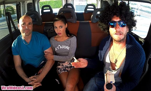 BangBus is back, with an all new European edition. This time the boys pretend they are hosting a TV show, in which where they interview people on the streets. They eventually convince a couple to get in the van. At first this couple is very reluctant to do anything asked by the guys. However, little by little we learn that everyone has a price. After deciding on the right amount Euros, the boyfriend split for the fuck session to commence. Alberto Blanco fucked