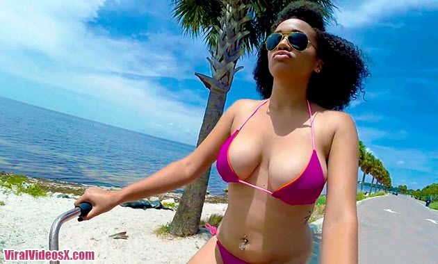 Julie Kay, con esas pedazo de tetas naturales... y ese cuerpo de jamona! No se a vosotros, pero a mi me pone muy muy cerdo! En este vídeo grabado para Bangbros, todo comienza como si de verano azul se tratase, paseando cerca del mar sobre una bicicleta... pero la cosa termina de manera muy distinta! Julie la chupa como solo las negras lo saben hacer... y follar... madre mía como folla!