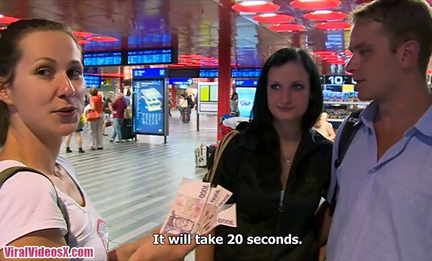 Una impresionante chica de pelo oscuro y su compañero gruñón. La gente del campo no nos sorprendió en los oídos. ¡Acabas de llegar a Praga y alguien agitando billetes a cambio de una mamada! Los agarramos y los llevamos a un pequeño bosque detrás de la estación de ferrocarril.