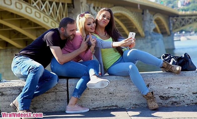 We have two Spanish hotties for you this week. I spotted them sight seeing with their friend by the river while they asked for directions. I got to talking with them, and they were interested in going back to my place for a drink. Once we got there, the girls really loosened up and started playing with each other. It wasn't long before they had their tits out and were stripping down. Before long, they grabbed their guy friend and started sucking his cock then hopped on to ride him.