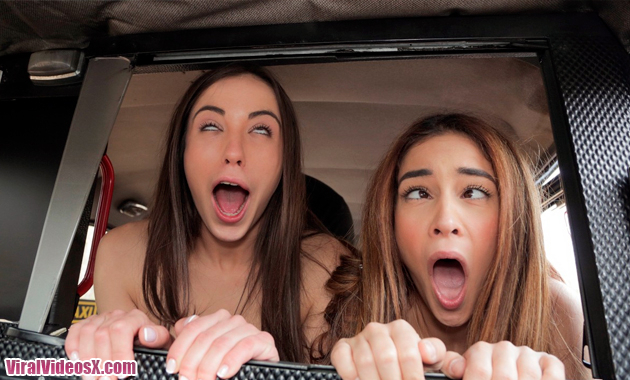 Anastasia Brokelyn and Ginebra Belluci, two gorgeous Spanish women, who asked me to drive them to Barcelona. I told them there was no way my car could make it from Prague to Barcelona, but they didn't exit my cab. As I drove, they started to kiss, and even licked each other's boobs! This caused me to swerve, and almost caused a collision. The women were angry, but can you blame me for getting distracted? They were going to report me, so I offered them the car for free for some alone time. I parked, and they noticed my cameras, so they put on a show for me, shaking their asses. When I came back, they asked to see my dick, and when I took it out, they gave me a double blowjob! It was heaven! These Latina stunners took turns fucking and sucking me until I pulled out of Ginebra's pussy to cum on Anastasia's face!