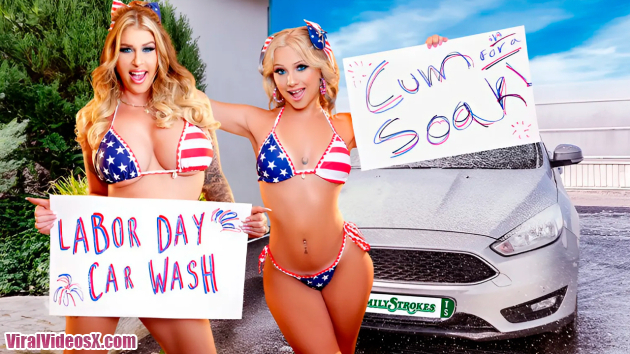 Venus Rivers band together to start a stepmother-and-daughter carwash. They want to bring in the big bucks, and they know men all over town will fork out any amount of dough to get a good look at their spectacular tits and ass. The girls get into their most patriotic swimsuits to kick off the Labor Day car wash and get to work. The suds and water soak their bodies as they shake their perfect melons. Lolly is the spitting image of a hot, busty wife doing whatever it takes to help her husband. And Venus looks just as alluring....