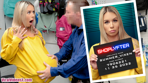 Summer Vixen thought she could get away with stealing a turkey under her shirt by pretending she is pregnant. The security cameras caught her straight away, so officer Jason took her for some questioning. Soon after, Summer is crying desperately, explaining to the officer that her family is going through a rough patch and she is just trying to help them. Jason tries to be understanding, but he has to do his security checks. After removing her clothes and feeling her body for any other concealed item, he is willing to let her go without any consequences as long as she does something for him. Summer agrees, going for the officer’s cock. As she sucks, she starts to get the kick out of it, moving on to an intense fuck over Jason’s chair. After cumming on her face, officer Jason lets Summer go with the turkey. Thanksgiving is saved!