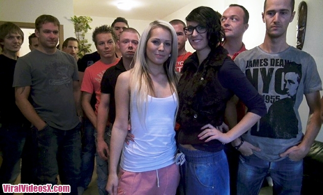 The 14th gangbang when we tried to help a pretty girl to get pregnant was a huge success. We got hundreds of mails from girls who want to get pregnant as well. We have read them all and carefully chosen the most beautiful ones and went to see them. The next load of cum will go to young Kristyna from Prague who literally begged us to be first. Cameras in our hands and about 30 guys following us, we went to visit her. We nearly did not fit inside her small apartment. It was a mess, a crazy mess.